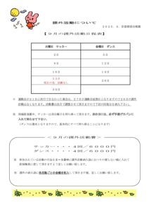 9月課外予定表